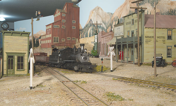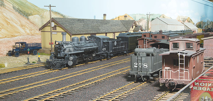 The DC sound days showed steam sound to cause people to run at lower speeds, which on a track length impaired layout is really a good thing. To extend the run over the road, all the water stops ended up with spout animation and tank fill sound which runs a pre-determined amount of time. Crews no longer blow by water stops. Sound modules are also used to time individual stock car loading at Fritz Park and Durlin. A sound clip recorded years ago, when a locomotive was loaded with coal from the Chama tower on the Cumbres & Toltec Scenic RR, is in a sound module and playback times the coal loading event in ¼-inch scale. LEDs with fiber optics put on a light show simulating cleaning a locomotives fire over the Chama ashpit. All are fun work for the crews, and lengthen the time of a trip.