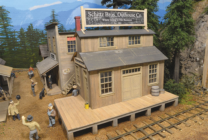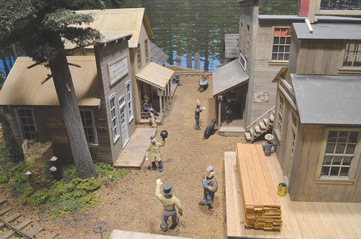 Around each structure details abound, and a few interesting scenes have been placed to catch the viewer’s eye. Figures are well situated to create a believable town atmosphere including the animal population. I have several ideas for more details that will eventually find their way to the layout. One detail I have been considering is a horse and wagon for the Outhouse company. A cargo of a small display of outhouses would be appropriate, maybe some HO scale outhouses might do the trick.