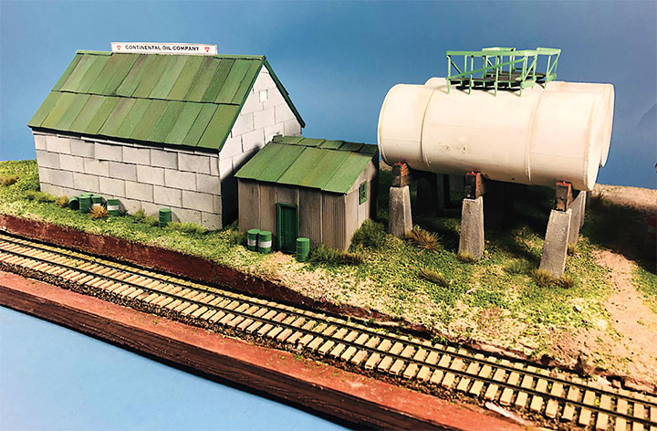 I built the entire petroleum spur at my workbench, including the scenery. This diorama replaced an existing spur on my layout and was blended into the basic scenery. With the Conoco distributor in place, I now have a destination for my San Juan Models tank cars. The Texaco dealership provides me with a destination for my CYCX numbered narrow frame tanks as well as my double dome TCX tanks. The people of Placerville and the adjoining Paradox Valley will be well served for their petroleum needs.