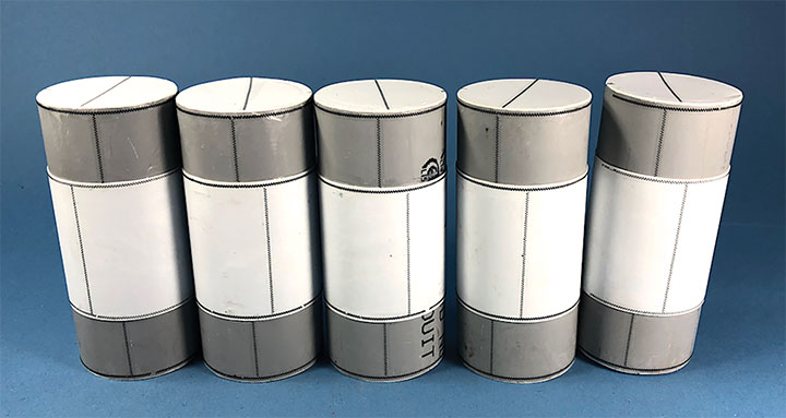 I made the Texaco and Conoco tanks identical. There is one photo in the RGS Story Vol. 1 (Sundance Publications) that shows the Conoco tanks in the background, and they appear to be about the same size as the Texaco tanks. This made construction a lot easier. With all the Archer decals applied, I had all five tanks ready for paint. I ended up painting them Floquil Reefer White shortly after this photo was taken.